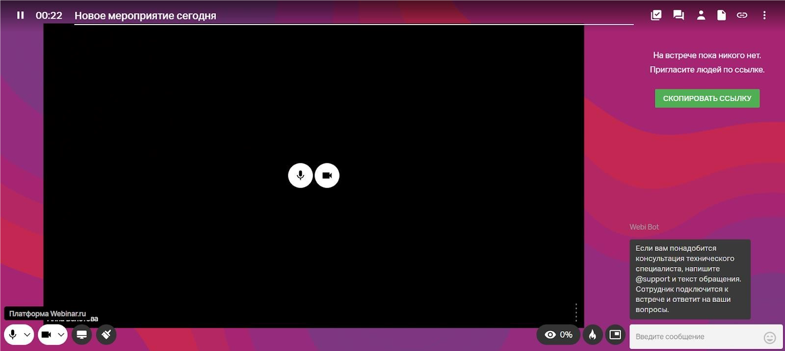 Если вы заходите на встречу в первый раз, нужно будет дать платформе доступ к микрофону и веб-камере.