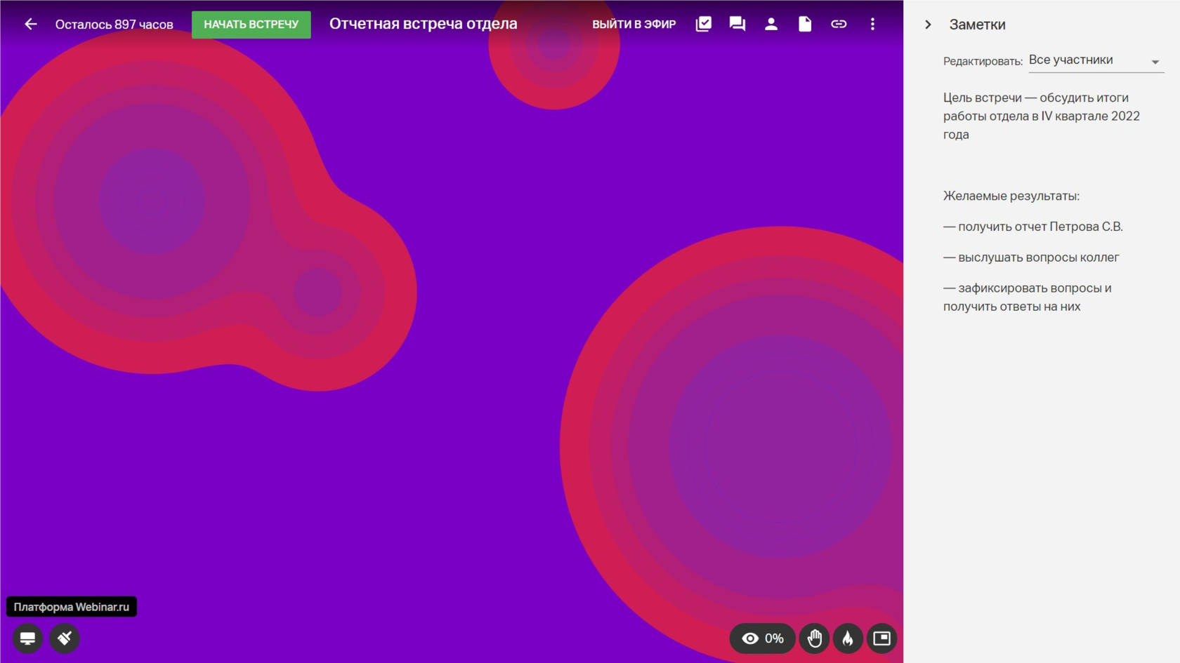 Разберем короткий путь, когда нужно создать встречу прямо сейчас. В личном кабинете нажмите кнопку